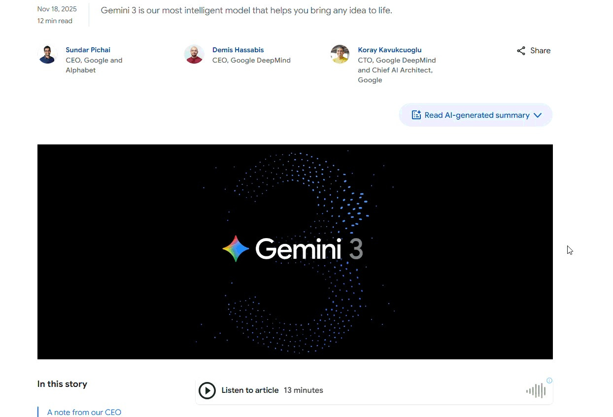 When Demis Hassabis talks about Gemini’s capabilities, he emphasizes intelligence. When Pichai talks about it on earnings calls, he emphasizes integration. Different audiences, different framing, same underlying priority: protect the core business.