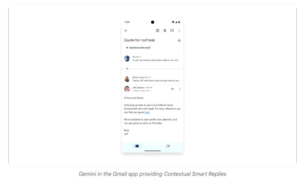 because Gemini integrates into the OS, it reads what’s currently displayed. You’re looking at a restaurant menu in any app, you invoke Gemini and ask “Does this place have good vegan options?” It reads the screen, queries Maps and Search, answers without leaving the app.