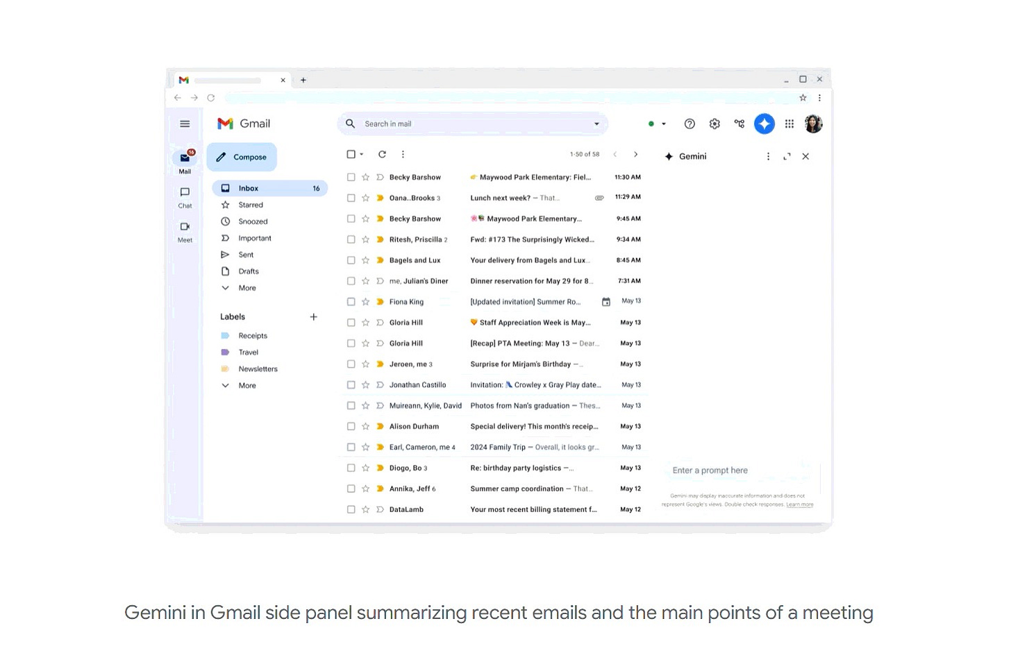 You can tell it: “Draft a Q4 strategy document based on the emails from the marketing team, the Q3 financial slides in Drive, and the chat logs from the Genesis project channel.”